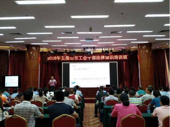为贯彻落实省总工会六届十次、十一次全委会议精神,规范基层工会工作,维护职工合法权益,促进劳动关系的和谐稳定,根据省总关于“法律大讲堂”活动统一安排,9月26日上午,五指山市总工会在福德莱大酒店四楼会议室举办2018年工会干部法律培训班。参加本次培训班的基层工会干部共120人,会议由五指山市总工会常务副主席董伶同志主持。