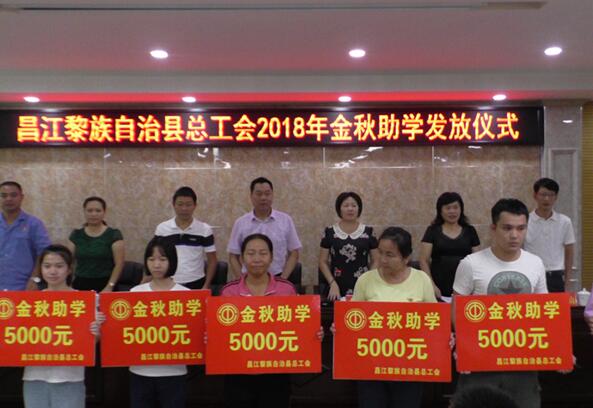 | 昌江县总工会举行2018年金秋助学金发放仪式