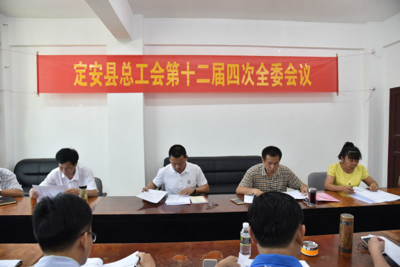 6月22日,定安县总工会第十二届四次全委会议在县总工会三楼会议室召开。会议由县总工会常务副主席许声耀同志主持,会议传达学习省总六届十一次全委会议和省工会党风廉政工作会议精神,总结自县总十二届三次全委会以来的全县工会工作和研究部署下一阶段工会工作、审议《定安县出席海南省工会第七次代表大会代表产生办法和名额分配方案》以及《定安县工会第十二届会员代表大会工作方案》以及补选黄兰、林鸿涛2位同志为县工... |