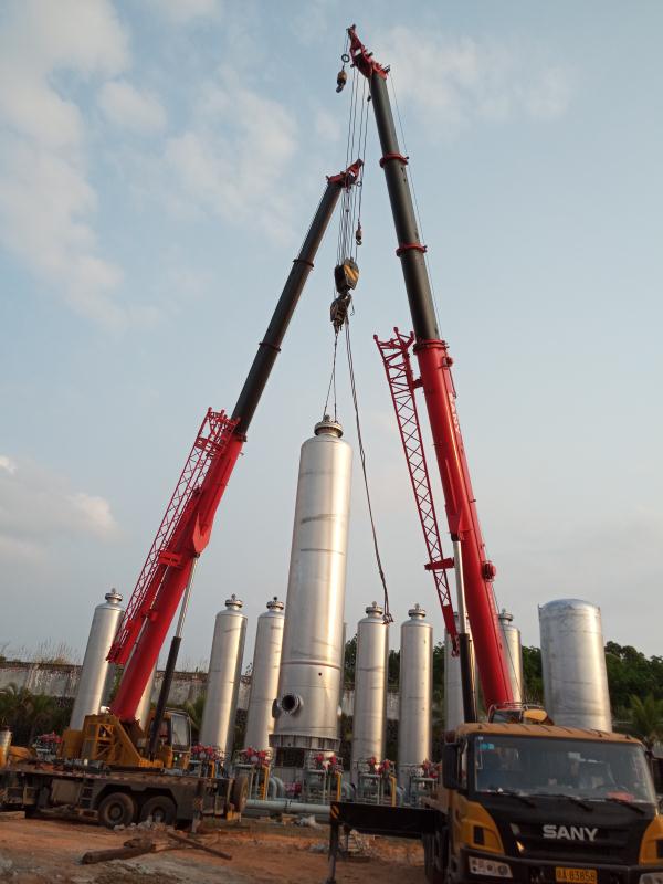海南项目部严格按照承包商管理要求和特殊危险作业许可制度,自塔器设备进场开始,认真落实吊装作业票、专项吊装方案等书面审核,安全监督人员严细认真检查现场防护措施情况,确保各项安全措施落实到位。随着最后一具吸附塔基座对正紧固,标志着整套变压吸附脱碳装置安装工作顺利完成。