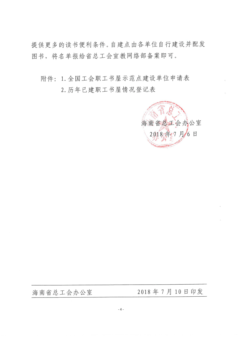 海南省总工会办公室关于申报2018年全国工会职工书屋示范点的通知(琼工办发〔2018〕116号)