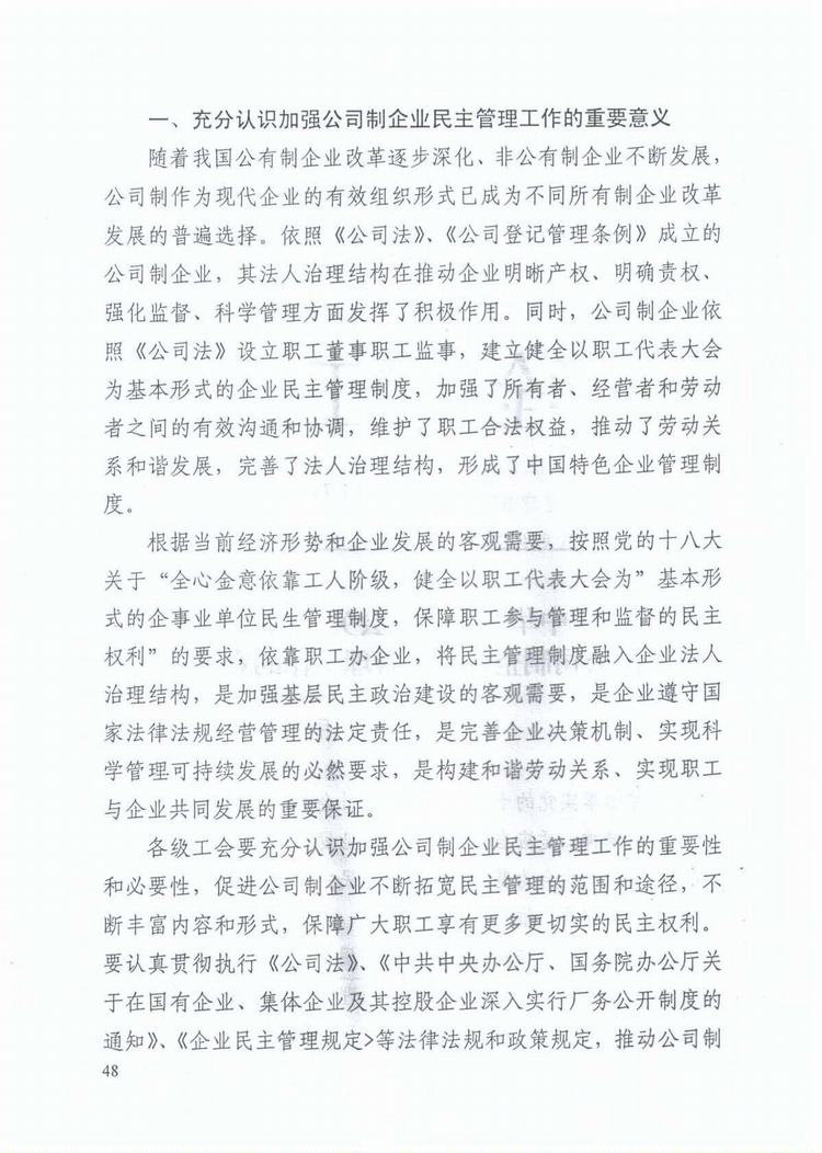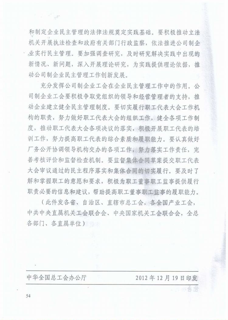 中华全国总工会关于加强公司制企业民主管理工作的意见(总工发[2012]78号)WORD版